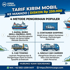 Mengirim mobil ke Manado kini tidak lagi rumit dan mahal. Dengan tarif yang transparan, metode pengiriman yang variatif, serta keamanan yang terjamin, Kirim Cargo adalah partner logistik terbaik untuk Anda. Jangan lewatkan promo diskon Rp 250.000 untuk pengiriman bulan ini!